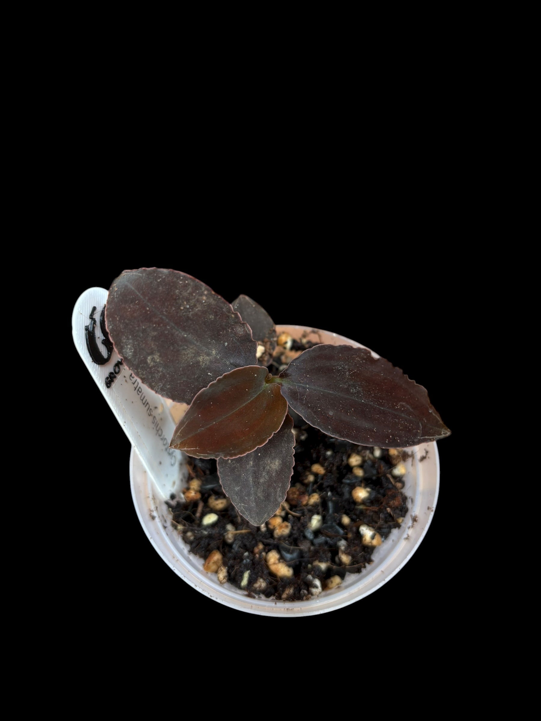 Cystorchis sumatra is a striking jewel orchid prized for its deep purple foliage that commands attention in any indoor garden. This compact terrestrial orchid thrives in humid terrarium environments, where its velvety leaves create dramatic visual contrast. Perfect for collectors seeking rare, statement-making plants, it rewards careful attention to moisture and indirect light with year-round ornamental appeal. An excellent choice for creating sophisticated planted displays.