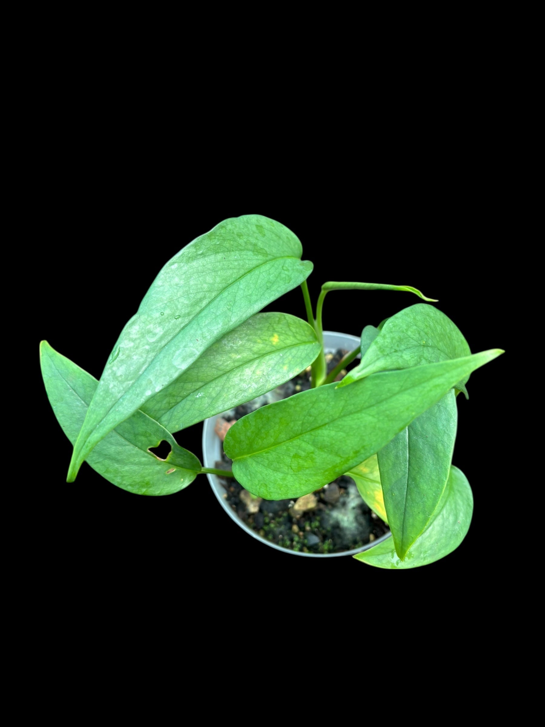 This vining aroid has beautiful elongated leaves that can appear silvery, blueish gray, or deep green depending on growing conditions. Once mature these plants get beautiful fenestrated leaves. They have a fast growing habit and when allowed to climb leaves size up very quickly. They can also be left to trail.